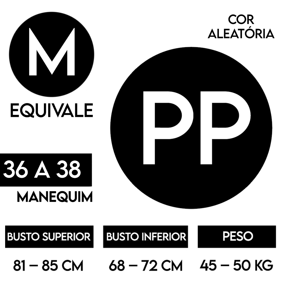 • M: Busto Superior: 81 a 85 cm | Busto Inferior: 68 a 72 cm | Peso: 45kg - 50kg